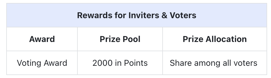 4.يمكن لكل مستخدم تم التحقق منه بواسطة KYC الحصول على ما يصل إلى 1/100 من إجمالي مجموع جوائز التصويت.