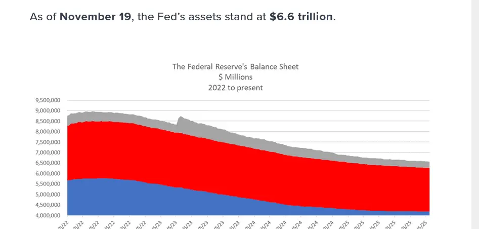 يأتي أول زخم كبير على مستوى الاقتصاد الكلي في 1 ديسمبر، عندما يُتوقع أن ينهي الاحتياطي الفيدرالي مرحلة تشديد الكمية. تاريخياً، كانت مثل هذه الحقن من السيولة تعمل كرياح خلفية للبيتكوين وقطاع العملات المشفرة بشكل عام.