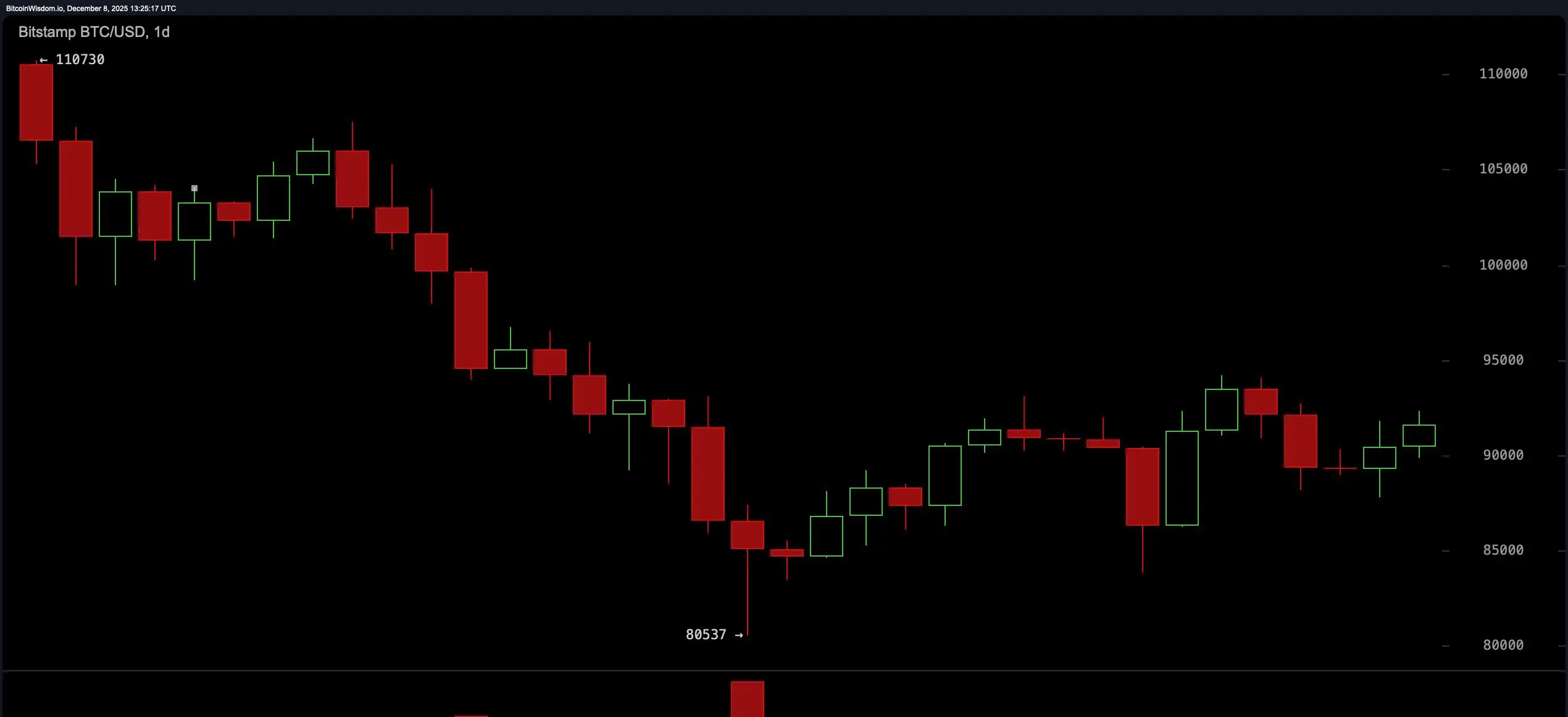 تصرفات سوق البيتكوين الأخيرة تسببت في دوار للمتداولين — وربما لمسة من الأمل أيضاً. بعد الهبوط من أعلى قمة تجاوزت الستة أرقام إلى 80,537 دولار، عاد البيتكوين ليتسلق باتجاه 92,000 دولار، محققاً ارتداداً قصير الأجل يبدو جيداً للغاية بحيث لا يمكن تجاهله. لكن لا تنخدع: رغم أن الأطر الزمنية المنخفضة تلمح إلى ارتداد تعافي، إلا أن الرسم البياني اليومي للبيتكوين لا يزال متمسكاً بالاتجاه الهابط.