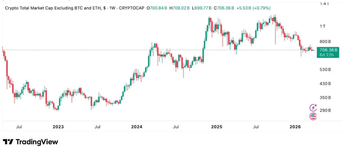 القيمة السوقية الإجمالية لسوق العملات المشفرة بعد استبعاد BTC وETH