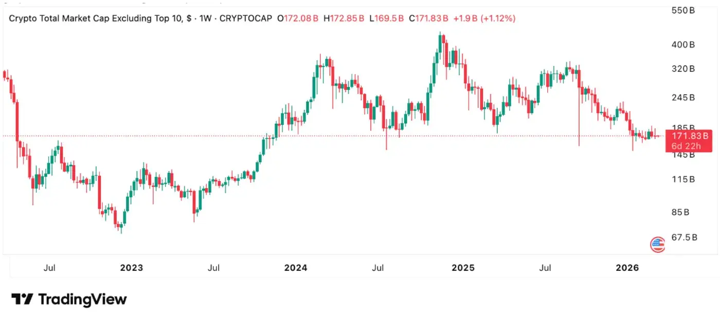 القيمة السوقية الإجمالية لسوق العملات المشفرة بعد استبعاد أكبر 10 رموز