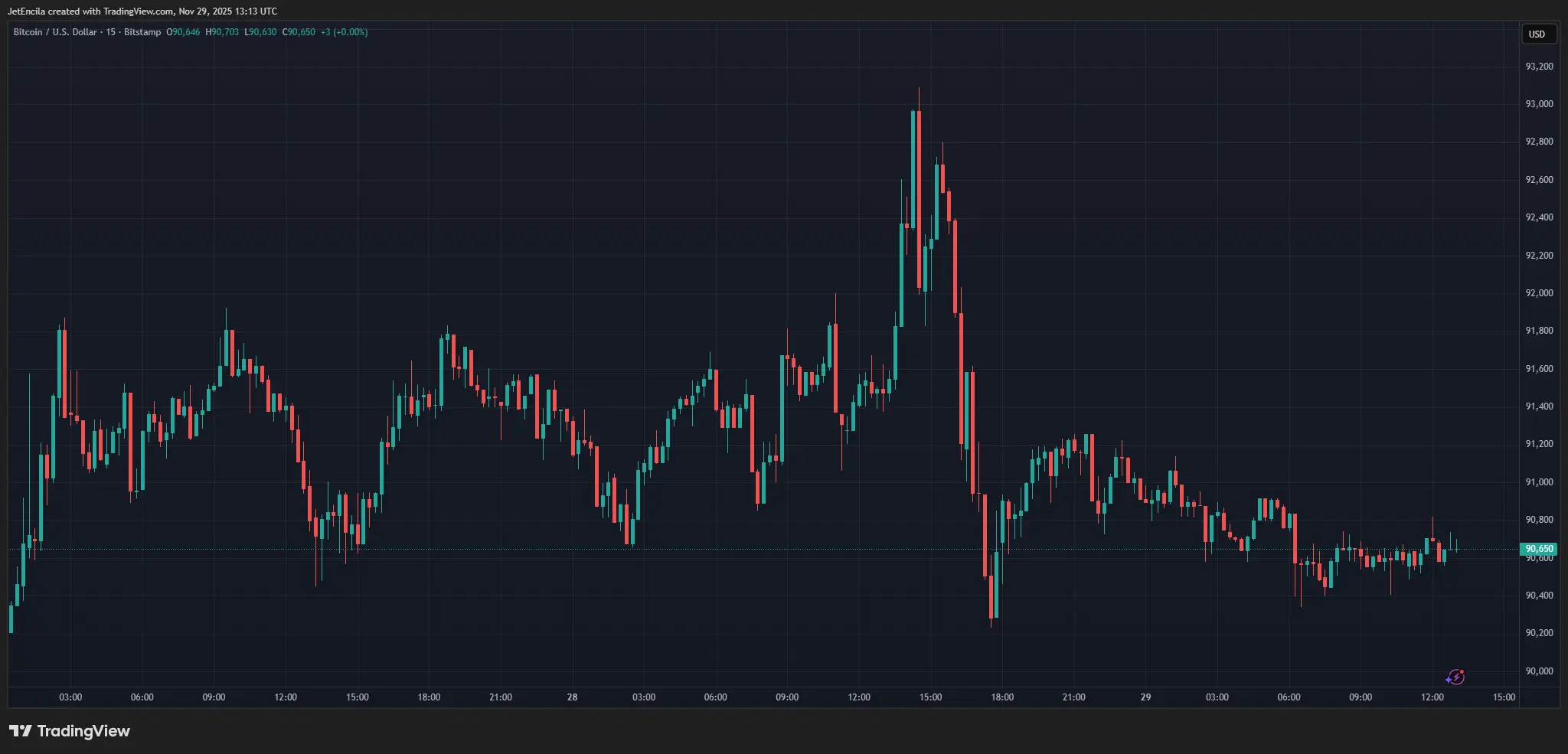 BTCUSD opera a $90,650 en el gráfico de 24 horas: TradingView