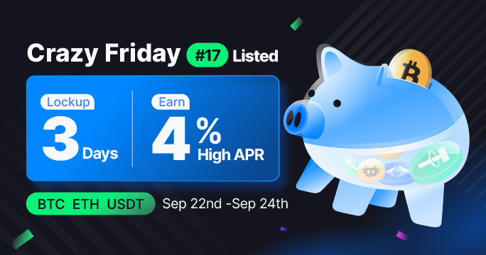 Cette phase de Crazy Friday permet de verrouiller BTC/ETH/USDT pour une durée aussi courte que 3 jours. L'APR atteint 4% et le quota total d'abonnement est limité et sera servi selon le principe du premier arrivé, premier servi !