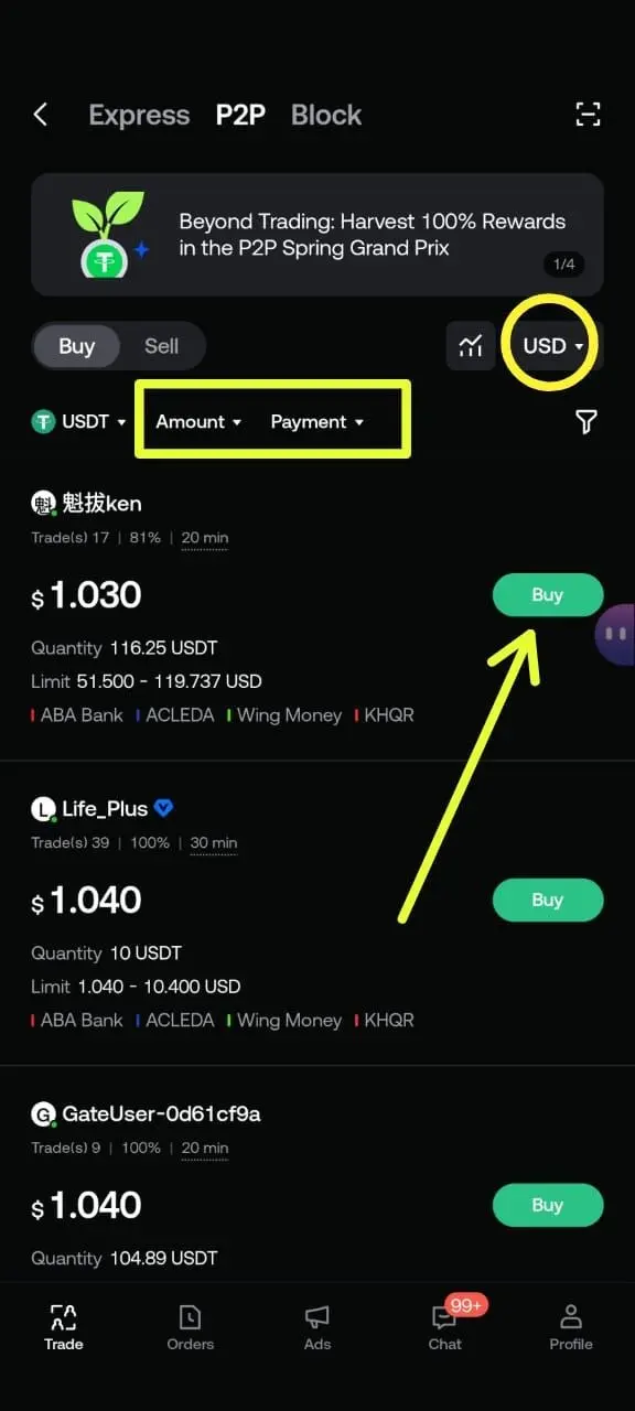 Accédez à la section de trading P2P