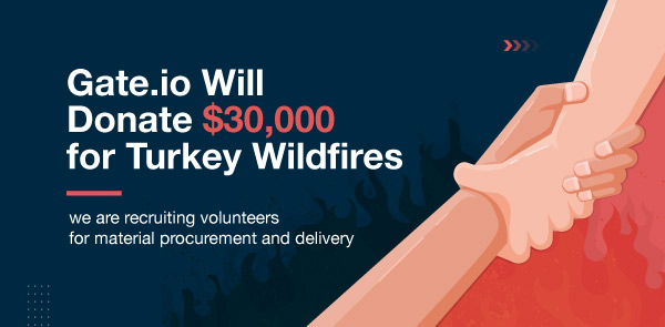 For many days over the past week, wildfires have been sweeping the southern coast of Turkey. The residents are devastated by the situation. Alongside lost lives, more than 1,000 people were evacuated; livestock, land and houses are expected to get burned. Gate is going to contribute $30,000 through the GT Foundation, to donate to the affected area in Turkey. The donation will be used to support impacted communities. Gate is recruiting volunteers for material procurement and delivery, all costs for purchasing and delivering supplies will be compensated by Gate, and the volunteers have the responsibility to purchase and deliver supplies on behalf of Gate.