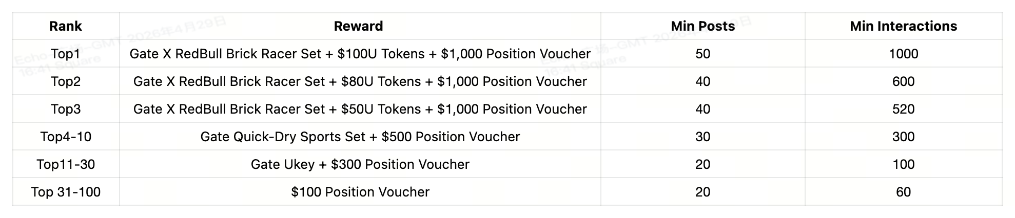 Edisi ke-8 dari Creator Incentive Program Gate Square resmi dimulai pada Mei ini. Baik Anda sedang mengulas strategi trading maupun membagikan pengalaman trading nyata, cukup posting dan berinteraksi di Gate Square untuk mendapatkan kesempatan meraih hadiah acak. Pengguna baru menikmati tingkat kemenangan 100% pada postingan pertama. Semakin sering Anda memposting, semakin besar peluang Anda untuk masuk ke papan peringkat kreator dan membuka hadiah tambahan, termasuk set balap bata Gate X RedBull dan pakaian olahraga quick-dry Gate. Di bulan Mei ini, biarkan wawasan nyata Anda bergema di Market dan tinggalkan jejak trading Anda di Gate Square.