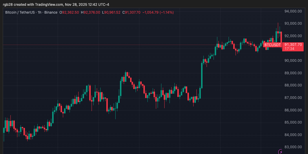 Bitcoin telah menguji kembali level resistance yang krusial untuk pertama kalinya dalam seminggu, mencapai level tertinggi satu minggu sebesar $93,092 pada Jumat pagi sebelum mundur. Kripto unggulan ini gagal mempertahankan level support yang krusial selama koreksi November, diperdagangkan di bawah $100,000 selama hampir dua minggu.