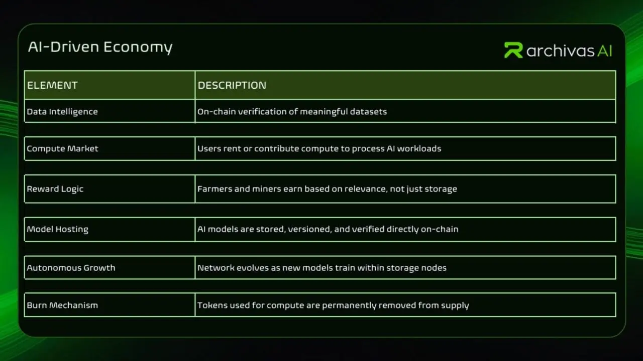 Archivasは、分散化ストレージをスマートメモリレイヤーに変革することを目指しています。従来のストレージソリューションとは異なり、スマートストレージ証明(PoIS)を通じて、AIトレーニングセットや研究データセットなど、内在的な価値を持つデータを検証および報酬します。これにより、検証可能で再利用可能なデータを必要とする人工知能開発者や分散化アプリケーションの基盤インフラストラクチャとなります。