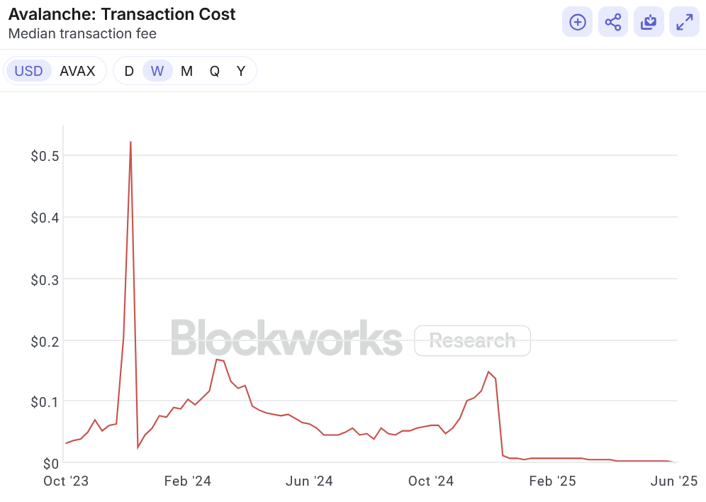 DeMeoは続けて言った:“ネットワークが今年以降に実施する‘非同期実行(ACP-194)’計画の一環として、コストは引き続き低下します。現在、Avalancheの価値捕捉はまだ顕著な規模には達していませんが、発展の道筋はすでに明確です。エコシステム内で66のアクティブなL1チェーンが継続的に稼働し、さらに多くのチェーンが接続される中で、Avalancheは自身のネットワーク効果を構築するための優位性を完全に備えています。”