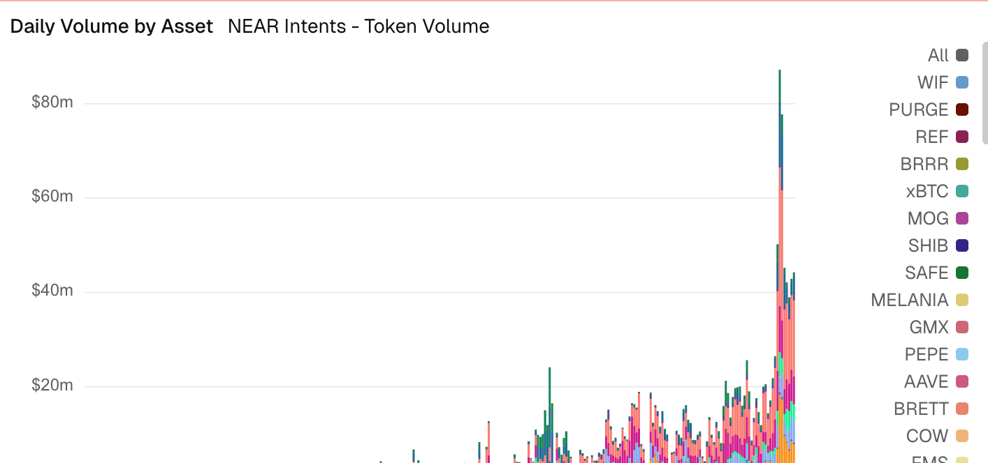 過去30日間でNEAR Intentsを通じて約$800 百万のスワップと支払いが流れ、今年初めに製品が稼働して以来、累計総額は約18億ドルに達しています。