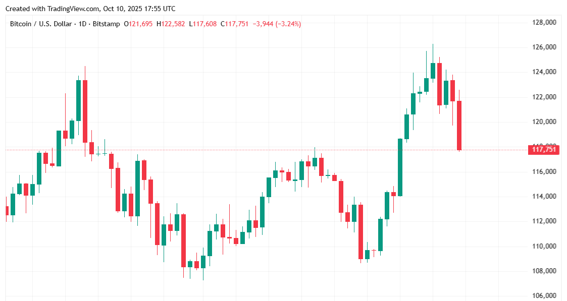 ビットコインが$118K を下回る、トランプが中国に「大幅な関税増加」を警告した後
