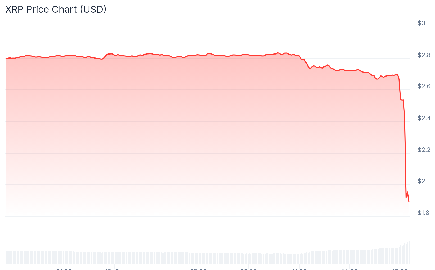 XRPは31%の下落を経験し、専門家は「価格暴落」を警告しました。このトークンは現在$1.90で取引されており、2024年11月以来の最低価格です。一方、市場キャップはその日の15%減少し、$115 億に達しました。
