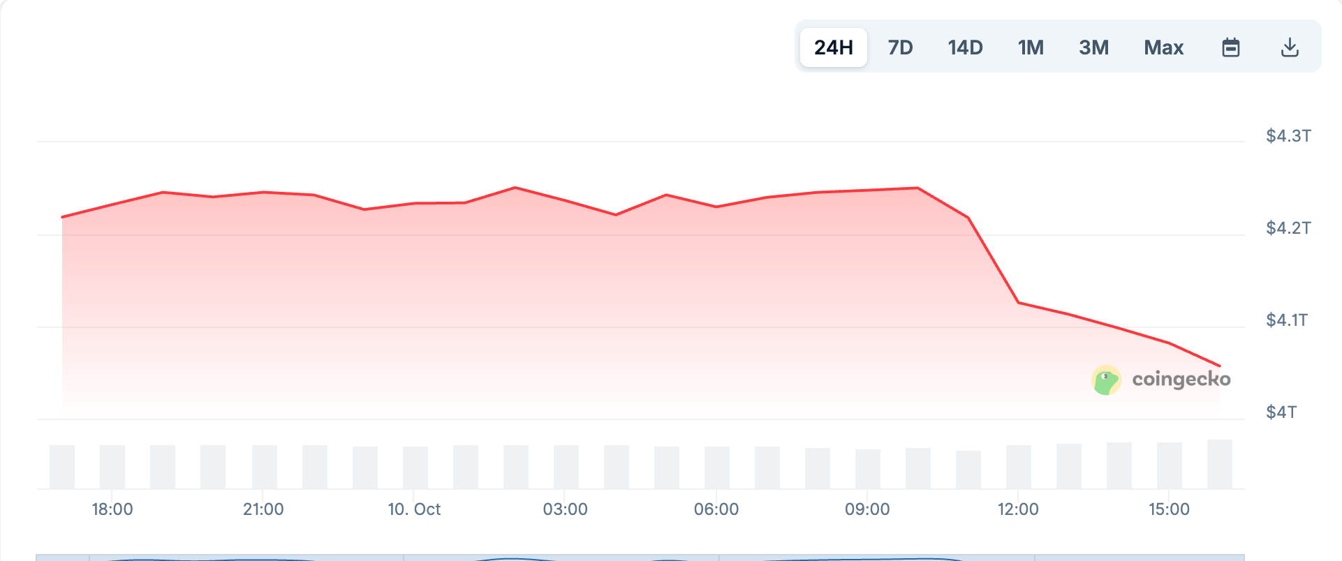 金曜日の夕方、広範な暗号市場が下落し、ビットコイン(BTC)は$108,000を12%下回り、イーサリアム(ETH)は$3,600を17%下回るというリスク回避の感情が再燃しました。 主要なアルトコインも同様に動き、暗号市場の総資本は約15%減少し、3.59兆ドルになったとデータによると。 XRPは31%の下落を経験し、専門家は「価格暴落」を警告しました。このトークンは現在$1.90で取引されており、2024年11月以来の最低価格です。一方、市場キャップはその日の15%減少し、$115 億に達しました。 あるプラットフォームのトークンは、1,000ドル前後をうろうろしているが、当日はほぼ20%下落した。日中の最大の損失者はStoryのIPで、61%減少した。時価総額で最大のメームコインであるDogecoinも、当日39%下落した。これは、ドナルド・トランプ大統領が中国からの輸入品に追加の100%の関税を課すことを決定した直後のことです。新しい関税は11月1日に実施される見込みです。この措置は、中国がレアアース鉱物に対して輸出管理を課したことへの対応として行われます。"中国が貿易に関して極めて攻撃的な立場を取っていることが明らかになりました。彼らは世界に対して非常に敵対的な手紙を送り、2025年11月1日から、実質的に彼らが製造するほぼすべての製品に大規模な輸出管理を課すつもりであると述べています。そして、彼らが製造していない製品も含まれています。"とトランプは金曜日にソーシャルメディアの投稿で書きました。"これは全ての国に影響を及ぼし、例外はなく、明らかに彼らが何年も前に考案した計画です。国際貿易では全く前例がなく、他の国々との関係において道徳的恥である"とトランプは付け加えました。