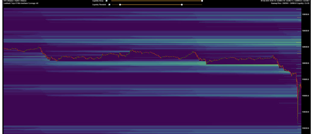 アナリストは、"文字通りすべての下落ロング流動性が吸収され、$102,000から$97,000の間に清算クラスターが残っている"という清算ヒートマップデータを指摘しました。
