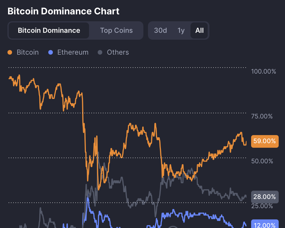ビットコインのドミナンスが59%近くで安定しており、アルトコインシーズンインデックスが37/100であるため、現在の市場は慎重なポジショニングを好んでいます。