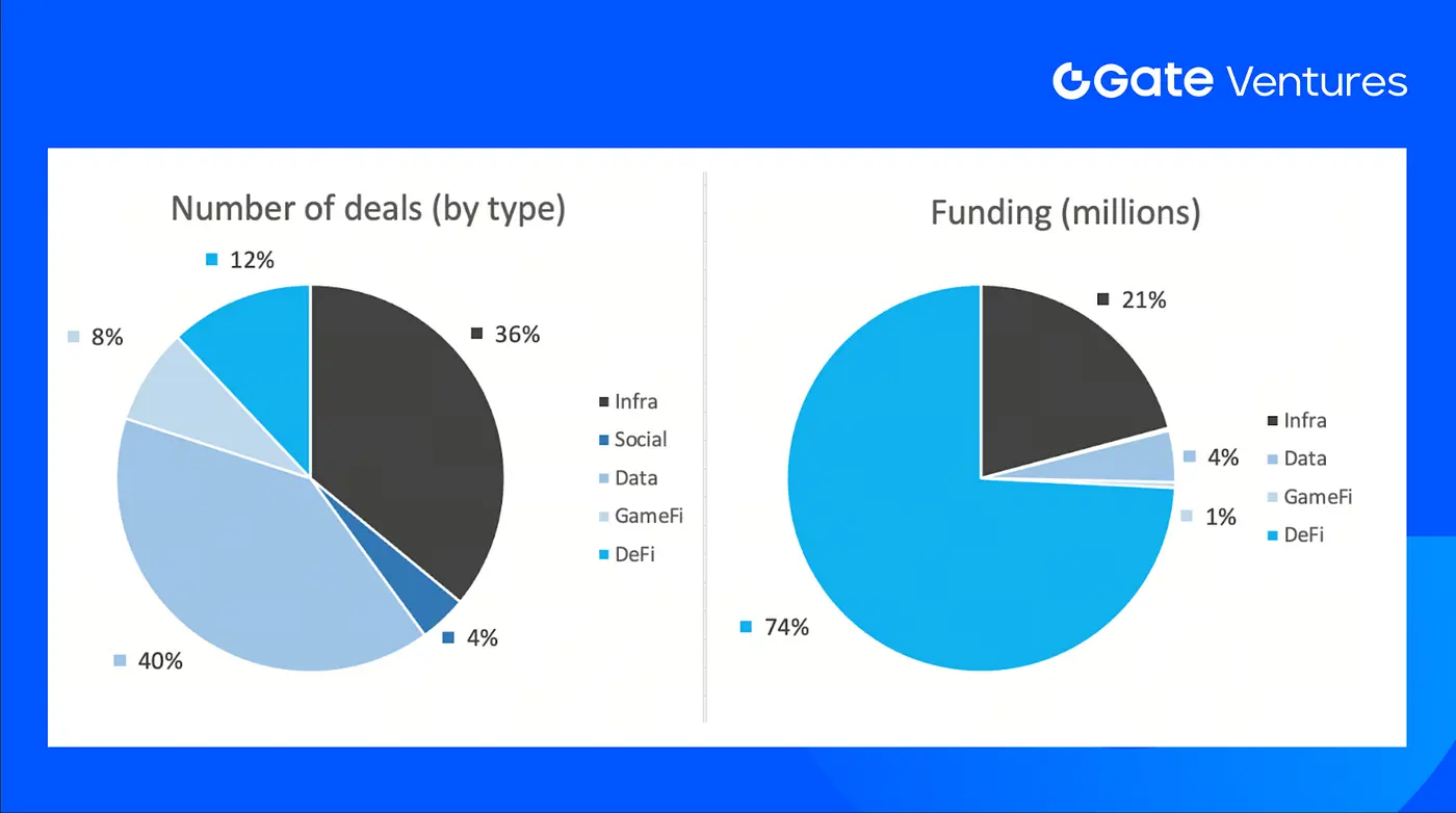 先週、25件のベンチャー投資取引が成立し、そのうちデータ分野が10件で38%を占めました。インフラが9件(36%)、ソーシャルが1件(4%)、ゲームファイが2件(8%)、DeFiが3件(38%)です。