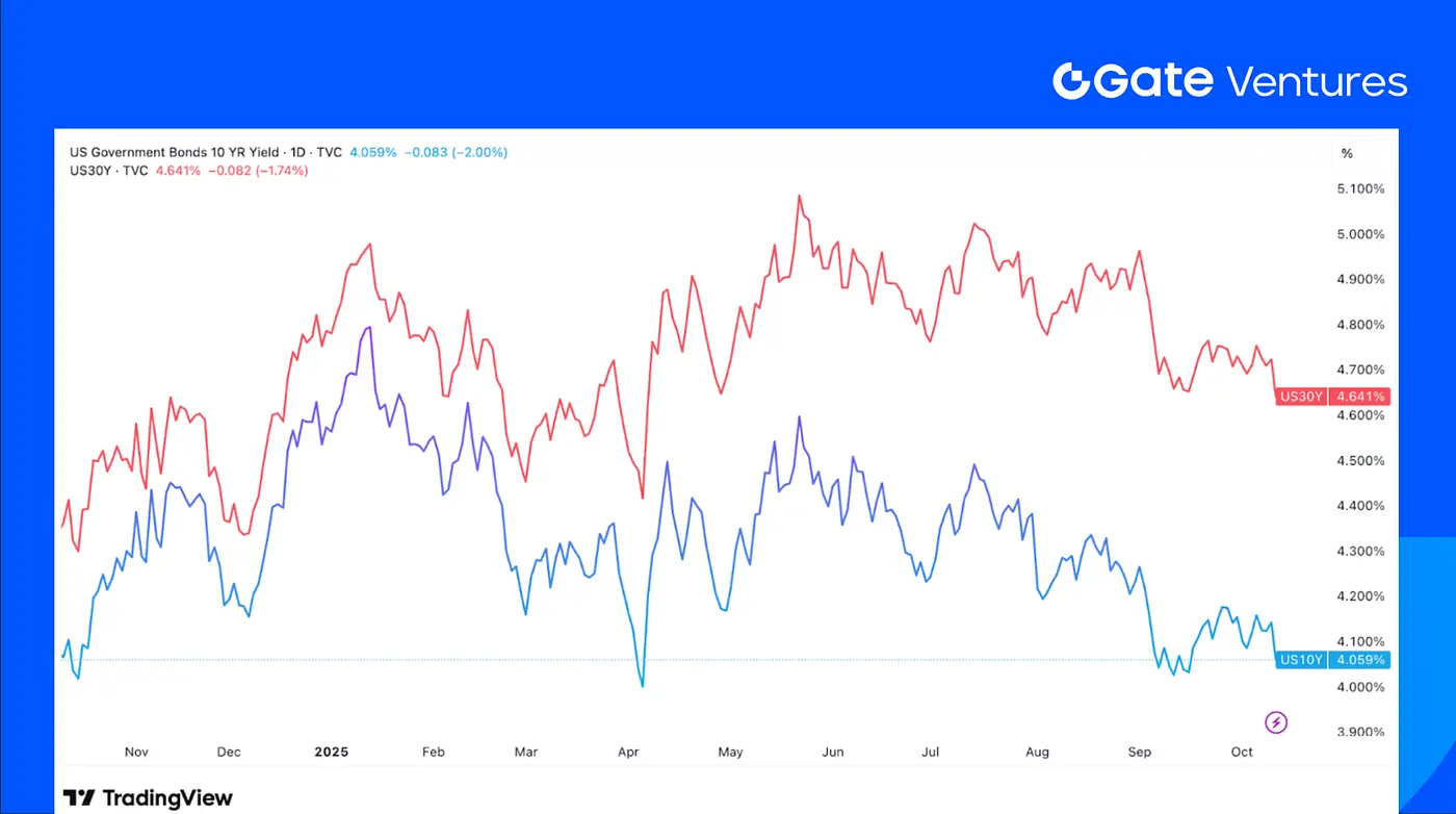 Gate Ventures 毎週レビュー:連邦準備制度(FED)が再度利下げし、暗号資産市場に再び変動が見られました。ETFが引き続き資金流入を引き寄せているにもかかわらず、ビットコインとイーサリアムは共にプルバックがあり、主流の暗号資産は大半が下落しました。Zcash、Bittensor、BNBは際立ったパフォーマンスを示し、Meteora、Monadなどの新興プロジェクトがフォローされています。## **ポイントの概要*** 連邦準備制度(FED)が利下げを再開し、新たな段階に入った。今後数ヶ月は「速-遅-速」のリズムを示す可能性がある。* 今週発表される主なデータには、アメリカのCPI、PPI、不動産、工業生産、ニューヨークおよびフィラデルフィア連邦準備制度の製造業指数が含まれます。* トランプが中国に対する関税引き上げの発言をした後、レバレッジと永続契約の集中した清算が引き起こされ、暗号資産市場は大幅に後退しました:BTCは6.3%下落し、ETHは7.9%下落しました。しかし、BTC ETFの純流入は271億、ETH ETFの純流入は48800万です。恐怖と欲望指数は38(恐怖)に低下し、ETH/BTCは0.036に下落しました。* 山寨通貨は最も下落し(-14.9%)、しかし Zcash(+68%)、Bittensor(+27%)、BNB(+10%)は逆市で突き抜けた。Zcashは新しいプライバシーウォレットの急速な採用により、「Zashi効果」を引き起こした。* Bittensorは、GrayscaleがSECにForm 10を提出し、Bittensor Trustを設立する計画を発表したことにより、機関投資家の参加シグナルを発信しています。BNBは、中国をテーマにしたmemeコインの取引量の急増とBinance Alphaの多通貨上場に引っ張られています。* Solana エコシステム流動性プロトコル Meteora($MET)が 16億 FDV でローンチされ、Raydium を超えました。Monad($MON)は EVM 互換の Layer-1 として、店頭先物取引で約 $0.087、暗黙の FDV は 87億に達します。* Antalphaは、最初のTether Goldリポジトリを作成するために、150,000,000ドルのAurelion資金調達ラウンドを主導しました。* JupiterはEthenaと提携し、SolanaベースのステーブルコインであるJupUSDを立ち上げました。* Galaxyが46000万の資金調達を完了し、採掘からAIインフラへの転換を推進。## **マクロ概要****連邦準備制度(FED)が利下げを再開し、新たな段階に入った。今後は「速-遅-速」の利下げリズムが期待されている。**連邦準備制度(FED)は9月に利下げを再開し、新たな政策サイクルを開始する見込みであり、アメリカ及び世界経済に深い影響を及ぼすでしょう。利下げサイクルは段階的に展開される可能性があり、2025年第4四半期以降には利下げのペースが加速することが期待されています。アメリカのCPI、PPIは反発の転換点を確認しており、今後数四半期の間に上昇し続ける可能性があります。雇用の下落圧力はインフレの上昇リスクを上回っており、成長を維持することがインフレ抑制よりも優先されています。トランプの政治的圧力が加わる中、連邦準備制度(FED)は利下げを加速する可能性があります。2026年上半期、インフレが持続的に上昇し、連邦準備制度(FED)は成長とインフレリスクの間で再バランスを図る必要があり、利下げは持続的に加速することが難しく、市場をスムーズにするために量的緩和を停止することになるかもしれません。2026年下半期、パウエルの任期は5月に終了し、トランプ政権はよりハト派の議長を指名する可能性があります。関税インフレの影響は徐々に解放され、連邦準備制度(FED)は再び利下げを加速することが期待されています。長期的には、世界市場は緩和取引が主流となり、ドルは持続的に減価し、株式市場、債券市場、コモディティ、金にとって好材料となるでしょう。今週、アメリカはCPI、PPI、不動産、工業生産、ニューヨークおよびフィラデルフィア連邦準備銀行の製造業指数を発表します。市場はCPIが8月比で0.3%上昇することを予測しています(先月は0.4%)。コアCPIは0.3%で横ばいを維持すると見込まれています。PPIは0.3%上昇する予想(先月は予想外の0.1%下落)です。価格の弱含み傾向は、美連邦準備制度(FED)が引き続き利下げする可能性を高めるでしょう。工業生産および製造業調査も今週の市場動向に指針を提供するでしょう。(1, 2)! [](https://img-cdn.gateio.im/social/moments-30dd24e62dec5b13299617845115d299)アメリカの過去5年間のCPIの動向! [](https://img-cdn.gateio.im/social/moments-2980966c8b520c906d518b79fb54e213)DXYの先週の米ドルは強い動きを見せ、木曜日には99ドルを突破し、金曜日には98ドルに戻りました。政府の閉鎖後、米ドルのレジリエンスが顕著になり、市場は連邦準備制度(FED)の利下げが引き続き慎重に行われるとの見方を示しています。(3)! [](https://img-cdn.gateio.im/social/moments-919ad818d0285bd081d830a64e763510)アメリカの10年および30年国債利回り先週、米国債の短期および長期の利回りがともに顕著に下落し、10年物利回りが月間の新低値を記録しました。トランプ氏の発言は明らかに債券価格を押し上げ、利回りを引き下げました。(4)! [](https://img-cdn.gateio.im/social/moments-f8b3a3c4d52b0864bd612b9ae438ee4f)GOLD金価格は先週強く反発し、4000ドルの大台を突破