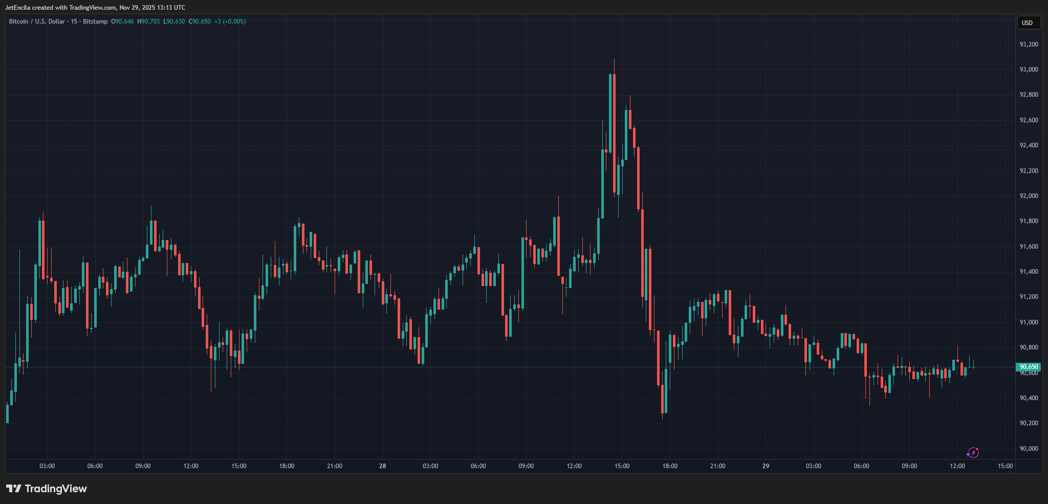 BTCUSDは24時間足チャートで90,650ドルで取引されています:TradingView