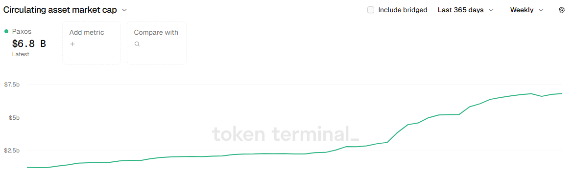 過去1年間で、TokenTerminalによると、Paxosの総資産評価額は12億ドルから68億ドルに成長しています。