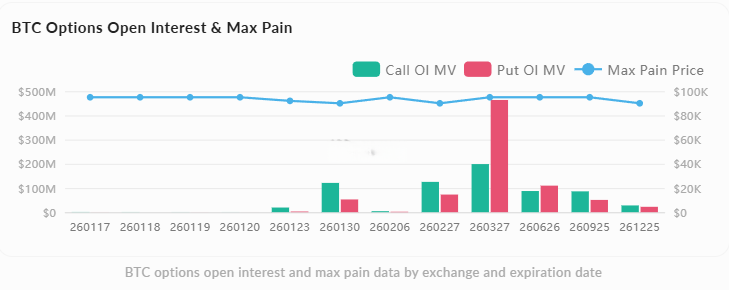 • 看跌期权持仓集中$95,000附近,与最大痛点吻合