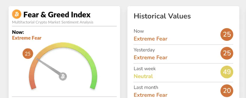 Amid growing risks of another US government shutdown, investors are flocking to safe-haven assets amid mounting uncertainty. The Crypto Fear and Greed Index now shows ‘Extreme Fear’. Sentiment had recovered to neutral less than a week ago.