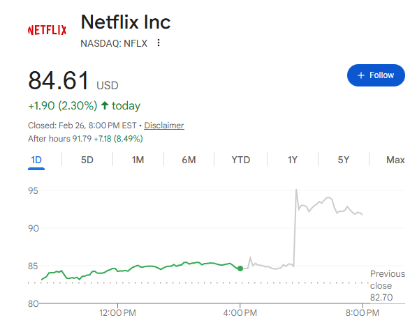 On Thursday, February 26, Netflix co-CEOs Ted Sarandos and Greg Peters issued a statement saying that after Warner’s board deemed Paramount’s $31 per share all-cash bid superior to Netflix’s offer, the company would not follow through with their bid.