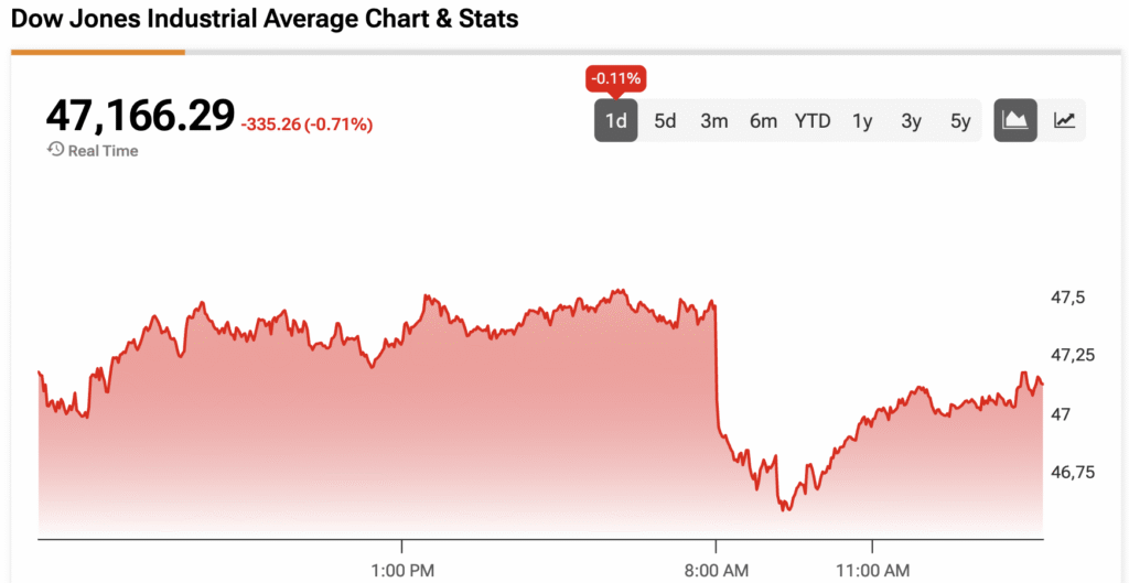 The Dow Jones is down by 0.71% at the time of writing.