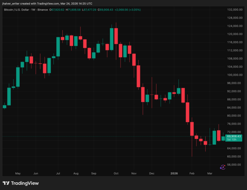 At the moment of writing, BTC’s price sits just below the $70ks. Source: BTCUSD on Tradingview