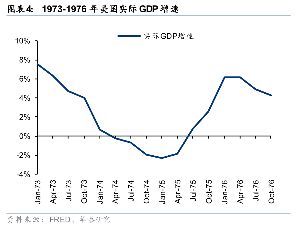 During the first round of the 1973–1974 oil crisis, the gold price experienced four phases: falling—rising—falling again—rising again, with the overall process seeing a substantial increase in gold prices. After the outbreak of the Fourth Middle East War on October 6, 1973, gold prices rose initially; then market panic led to a liquidity squeeze, causing gold prices to fall (gold fell 8.63% from $98.5/oz to $90.0/oz during 11.9–11.23). From December 1973 to March 1974, the per-barrel crude oil price rose from $4.1 to $13. Market panic sentiment gradually eased as fighting paused, and the market began to switch toward stagflation hedging; gold prices rose 73.67% to a high of $175/oz. During the U.S. economic recession in 1974Q1–Q2, from March to July, the gold price fell again by 21.6% to $136.5/oz. As the Fed shifted toward rate cuts, gold prices rose again in 1974H2, up 29.9% to $185.8/oz.