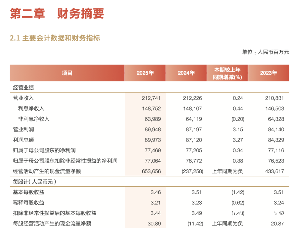 According to management’s interpretation, this growth mainly relied on the “commercial bank + investment bank” strategy, deepening group-level business synergy across “big investment banking, big asset management, and big wealth management.” It seized opportunities from a rebound in the capital markets, focused on core intermediary businesses such as wealth management, asset custody, and investment banking, and drove steady growth in fee income. At the same time, the bank’s cost-management performance was notable; the cost-to-income ratio was kept at 29.56%, and operating efficiency remained at a high level.