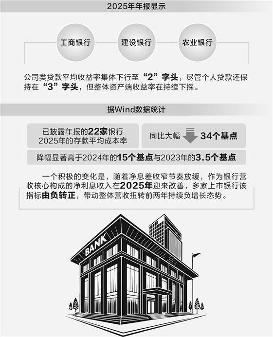 Up to now, more than 20 A-share listed banks have disclosed their 2025 annual reports, including 6 state-owned big banks and 9 joint-stock banks. The data show that although net interest margins are still narrowing, the above-mentioned banks are gradually getting out of the predicament of negative revenue growth.