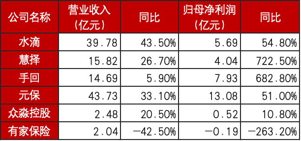 In terms of performance, insurance intermediaries showed clear differentiation in 2025. Shuizhong (Waterdrop) company’s operating revenue was RMB 61.62B, up 43.5%; attributable net profit was RMB 569 million, up 54.8%. Of this, insurance business revenue accounted for nearly 90%, steadily consolidating its market-leading position. Waterdrop and multiple insurers carried out deep cooperation. Despite the backdrop of narrowing commission rates, it still achieved steady growth by leveraging digital capabilities.