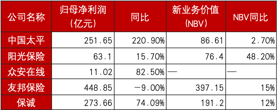 In addition to China Ping An, China Life, China Taiping, PICC P&C, and New China Life, among five H-share listed insurers—China Taiping, Sun Life Insurance, ZhongAn Online, AIA, and Prudential—based on the scale of attributable net profit, AIA ranked first with USD 195.87B (about RMB 497.35B), followed by Prudential with USD 6.23B (about RMB 44.89B) ranking second. ZhongAn Online ranked last with RMB 3.98B. In terms of growth rate, China Taiping grew 220.9% year over year, the highest increase; ZhongAn Online ranked second with a growth rate of 82.5%; and AIA was the only company among them with negative net profit growth.