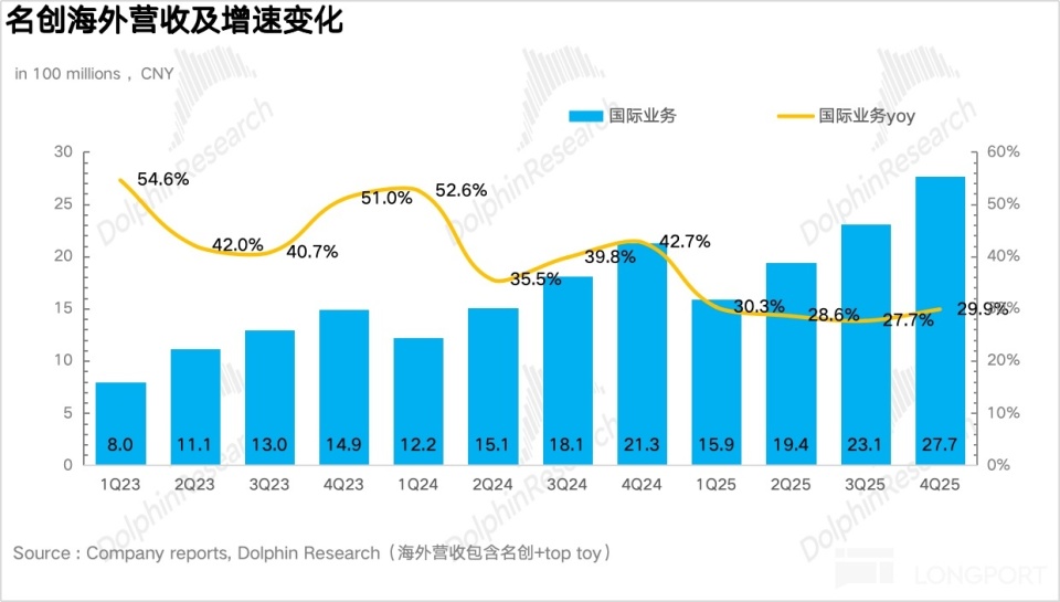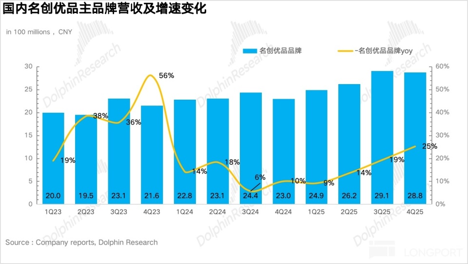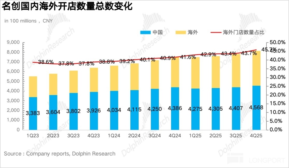 Breaking it down, benefiting from the full rollout of the Miniso big-store strategy and the impact of the November 《Zootopia 2》 collaboration, Q4 domestic same-store revenue returned to double-digit growth, Miniso main brand revenue reached RMB 2.88 billion, up 25.2% year over year, accelerating sequentially. This shows that the “Chief Growth Officer” team established at the end of last year led by Miniso’s merchandise center has been effective. The team integrated five departments—merchandise, operations, channels, marketing, and digital—making execution and rollout in specific tactics more efficient than the previous organizational structure.