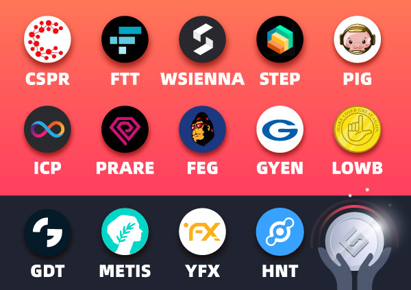 Gate listed & enabled trading of the following tokens: CSPR、FTT、WSIENNA、STEP、PIG、ICP、PRARE、FEG、GYEN、LOWB、GDT、METIS、YFX and HNT.