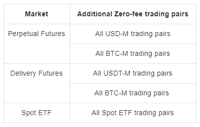 2. On 20 September 2022 at 10:00 UTC, Gate will launch more zero-fee trading pairs in the Spot, Futures, and ETF markets. The additions are as follows: