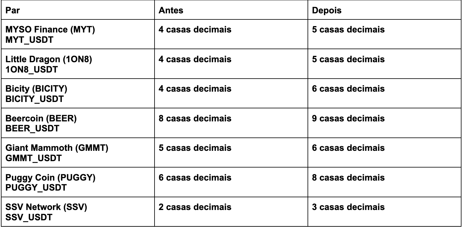 Se você opera com algum desses pares, sugerimos que você revise sua estratégia de trading antes da mudança, para minimizar qualquer impacto potencial.