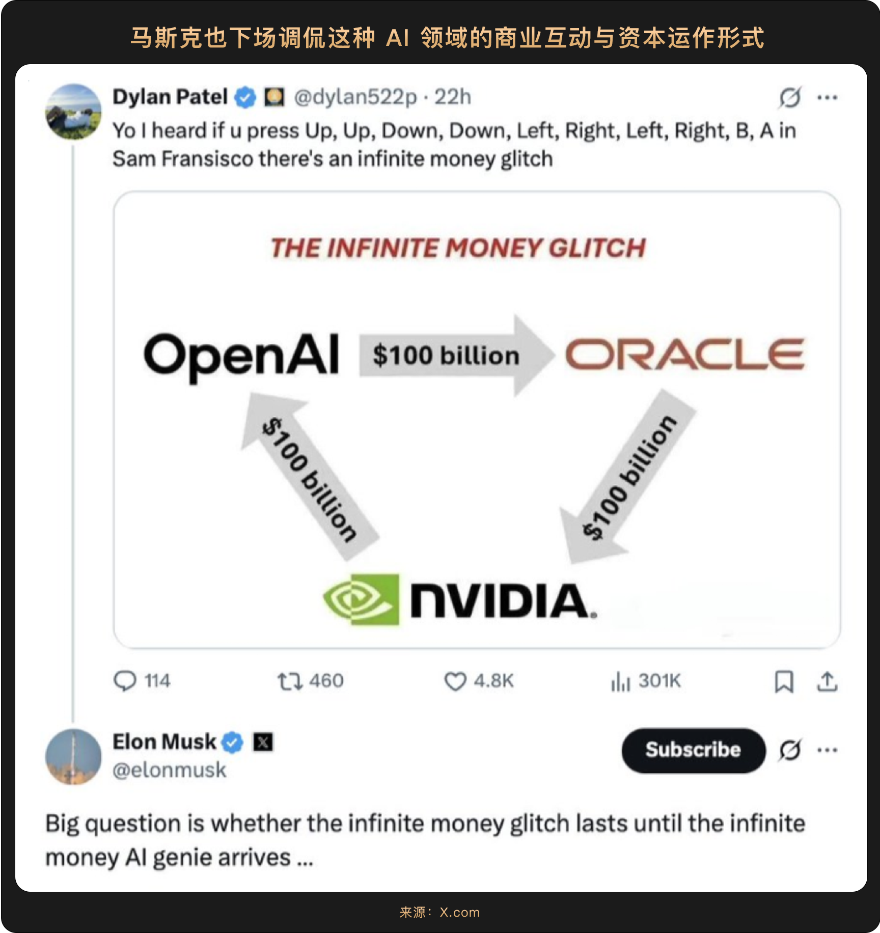 Интересно, что NVIDIA, OpenAI и Oracle (NASDAQ: ORCL) осуществляют друг с другом сделки на триллионы, что, похоже, создает в Силиконовой долине новую оценочную модель: инвестиции NVIDIA в 100 миллиардов долларов будут постепенно реализованы с развертыванием дата-центра мощностью 10 гигаватт от OpenAI, при этом для каждого гигаватта мощности требуется от 400 до 500 тысяч GPU, а общая мощность в 10 гигаватт соответствует годовому объему отгрузок NVIDIA — это означает, что инвестиционные средства в конечном итоге вернутся к NVIDIA через заказы на GPU от OpenAI, в то время как NVIDIA также сможет получать долю прибыли от OpenAI через акции; участие Oracle дополнительно усиливает замкнутый цикл, так как она сначала вложила 40 миллиардов долларов в закупку чипов NVIDIA для создания дата-центра "Звездные врата" для OpenAI, а затем через контракт на облачные услуги на 300 миллиардов долларов поставит вычислительные мощности для OpenAI, формируя цепочку финансовых потоков "OpenAI→Oracle→NVIDIA→OpenAI".