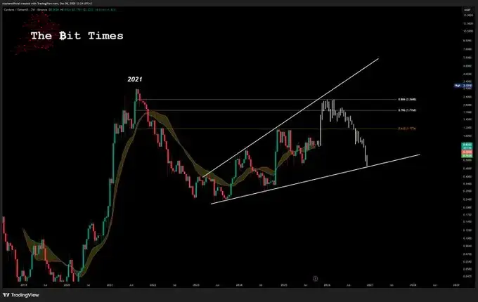 Тем временем, данные от псевдонимного аналитика STASHER, опубликованные в посте X 8 октября, показывают, что Cardano продолжает торговаться в пределах широкого восходящего канала, но остается в корректирующей фазе с момента своего пика в 2021 году.