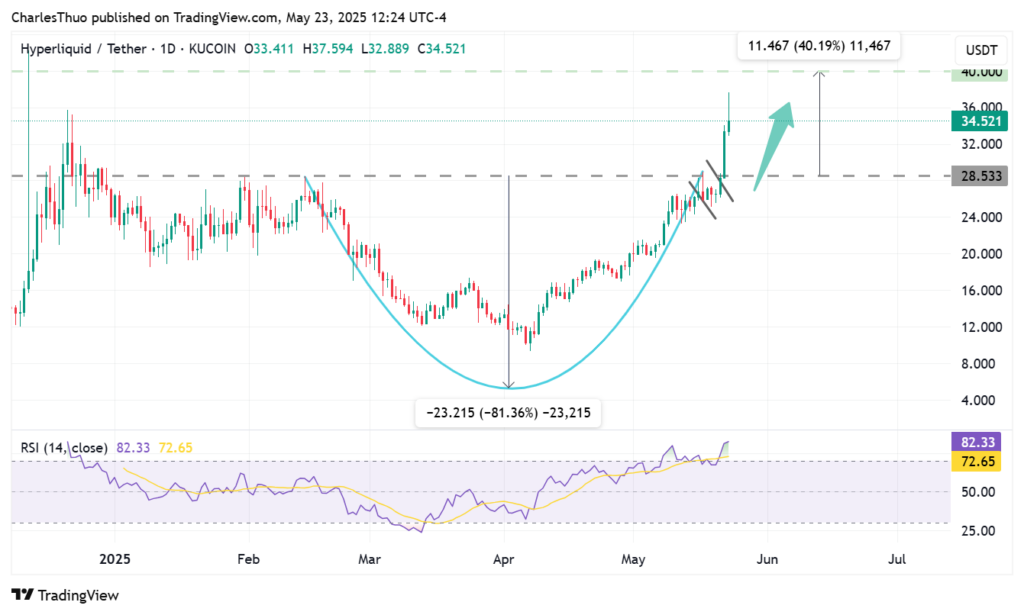 С учетом растущего импульса в объеме, вовлеченности пользователей и согласованности с регуляторами, быки HYPE теперь сосредоточили свои взгляды на уровне $40.