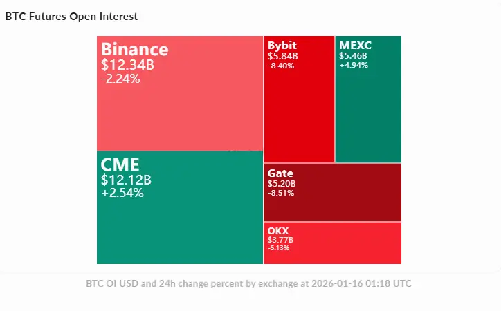 • Major Exchanges OI: Binance $12.34 billion (-2.24%), Bybit $5.84 billion (-8.40%)