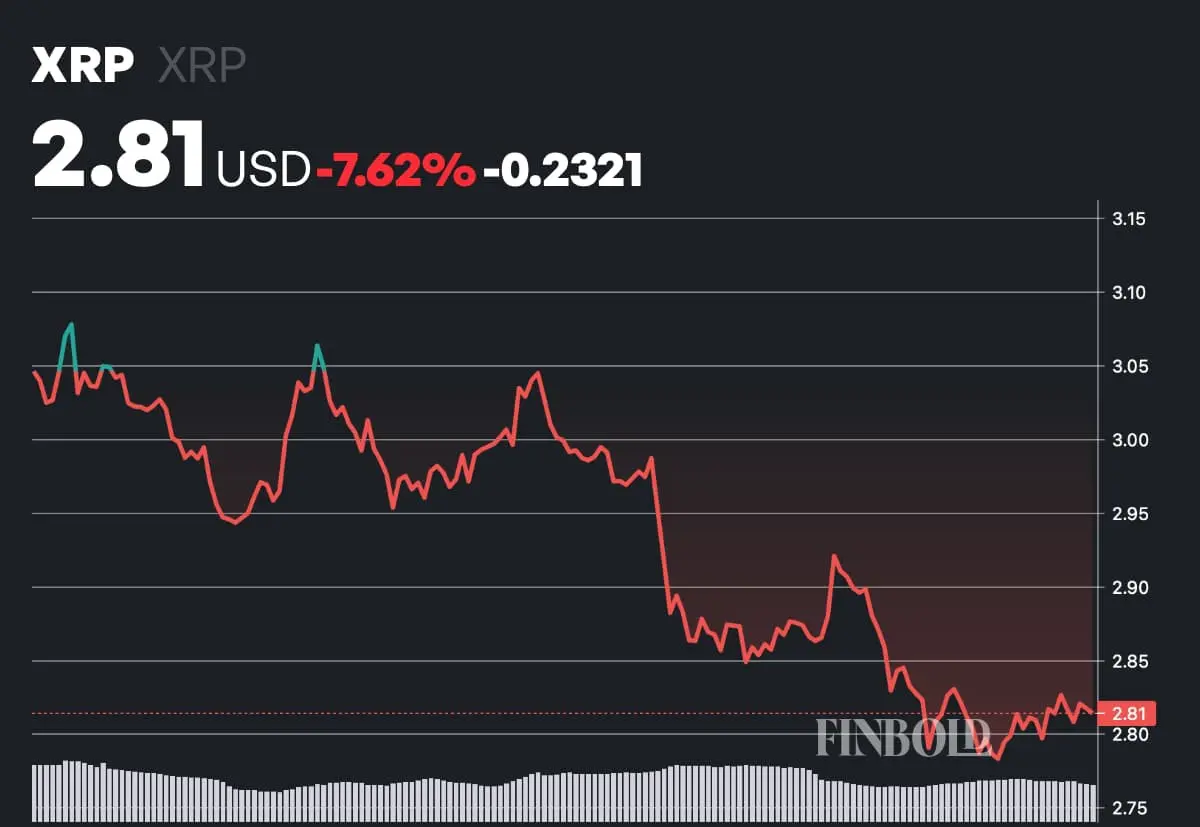 Зниження відображає тижневе зниження на 7%, яке потягнуло ціну XRP до $2,81, навіть незважаючи на те, що більш широкий крипторинок залишався відносно стабільним.