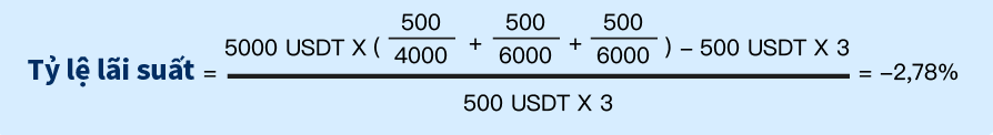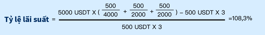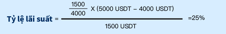 Nếu trong ngày 1 tháng 7,Tiểu Mỹ đầu tư 1500 USDT, thông qua giao dịch coin mua được 0,375 BTC (giá BTC ngày 1 tháng 7 là 4000 USDT), sau ba tháng, cô ấy bán ra toàn bộ BTC với giá 5000 USDT, tỷ lệ lãi suất chỉ nhận được là 25%.