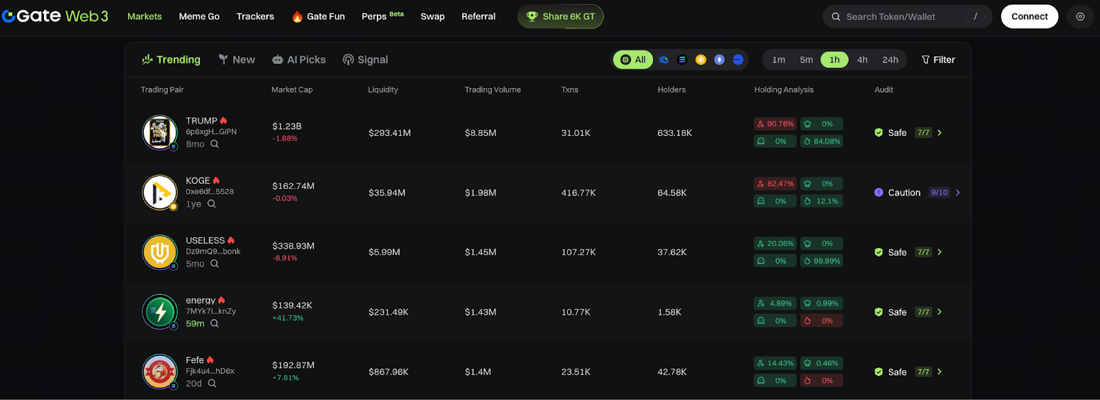 - Giao dịch thông minh với công cụ AI: Gate Web3 sử dụng các công cụ giao dịch AI để phân tích dữ liệu thị trường tự động, xây dựng chiến lược giao dịch phù hợp. Người dùng có thể nhận diện cơ hội tốt nhất trong thị trường biến động, đồng thời giảm thiểu rủi ro từ giao dịch thủ công.