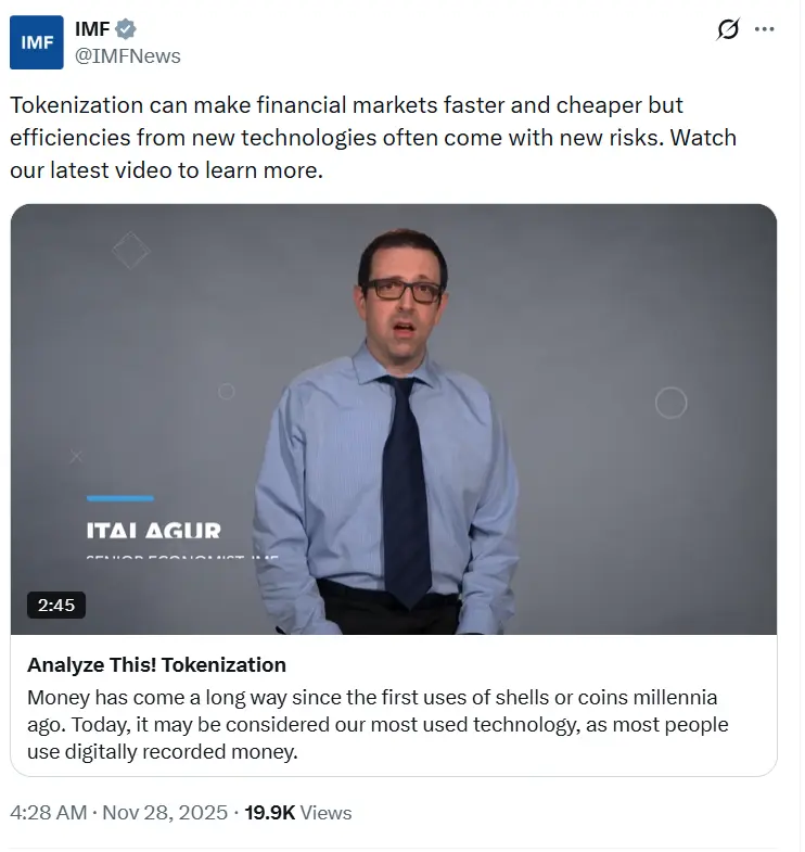 IMF đã Thả một video giải thích trên tài khoản X của mình hôm nay khám phá hiện tượng mới của thị trường được token hóa.