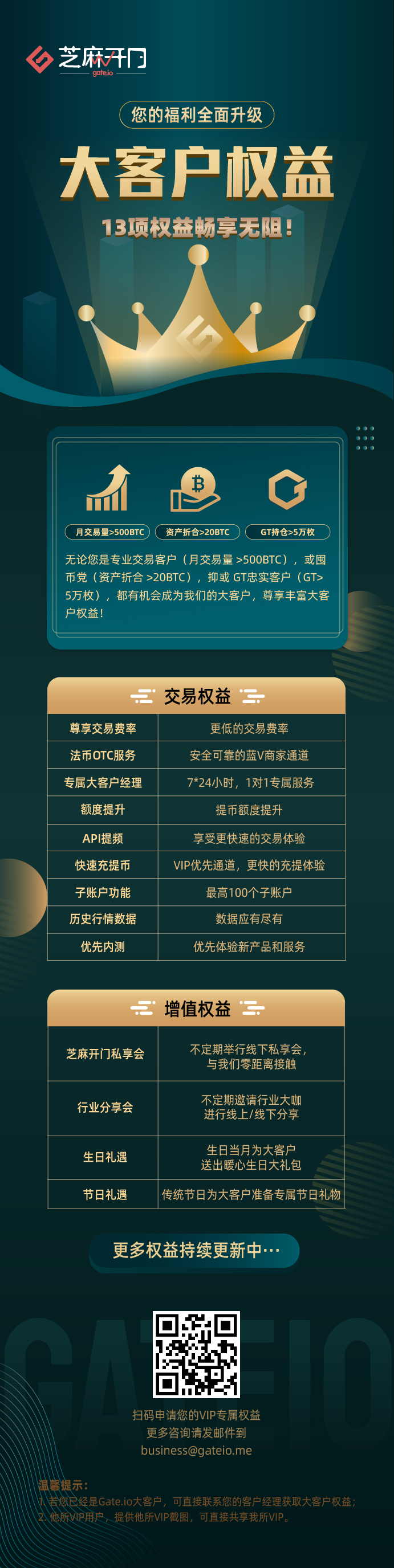 1.若您已经是Gate芝麻开门大客户,可直接联系您的客户经理获取以上权益;