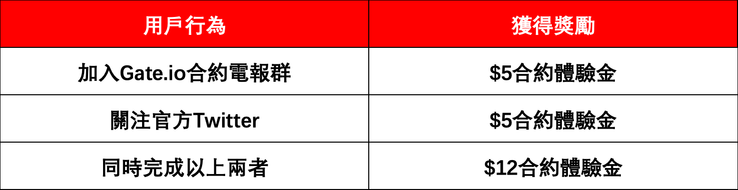 活动期间,用户首次加入Gate Futures Official(Telegram)或关注Gate Futures(Twitter),并上传截图至活动表单中,即可获得奖励,限前1000名用户。此外,进入官方合约电报群后,群内更有其他丰厚奖励。