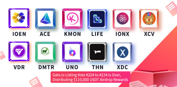 The “Vote For Listing Campaigns” for $IOEN, $ACE, $KMON, $LIFE, $IONX, $XCV, $VDR, $DMTR, $UNO, $THN, and $XDC tokens were completed, which had been successfully listed on Gate. We also rewarded users with token airdrops and made trading and withdrawal services available.