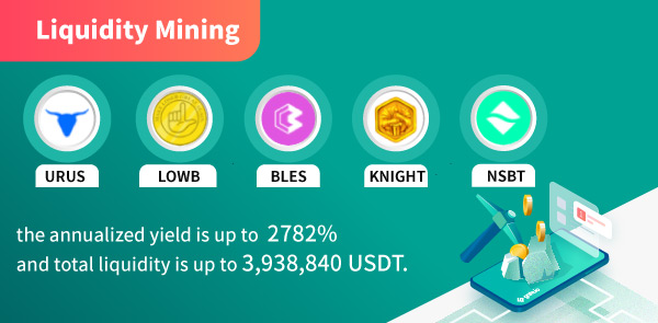 A total of 32 new versions of the liquidity mining pools (Automated Market Maker AMM) were released on Gate, including URUS, LOWB, BLES, KNIGHT, and NSBT. As of November 30, 2021, their annualized yield is up to 2,782%, and total liquidity tops at 3,938,840 USDT.