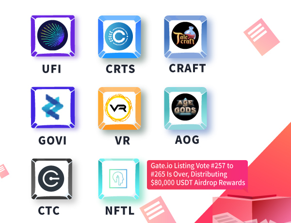 The “Vote For Listing Campaigns” for $UFI, $CRTS, $CRAFT, $GOVI, $VR, $AOG, $CTC, and $NFTL tokens were completed and successfully listed on Gate. We also rewarded users with token airdrops and made trading and withdrawal services available.